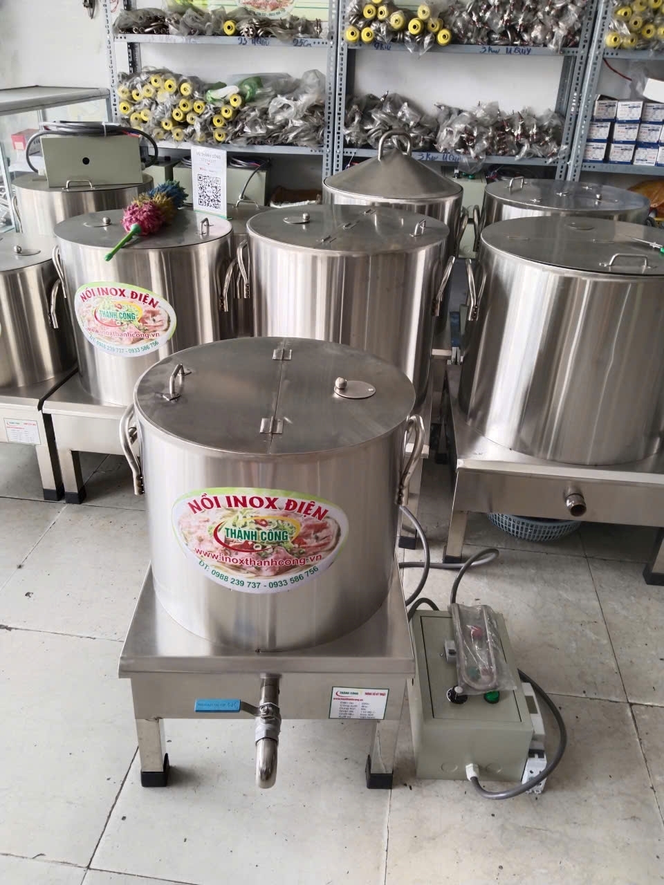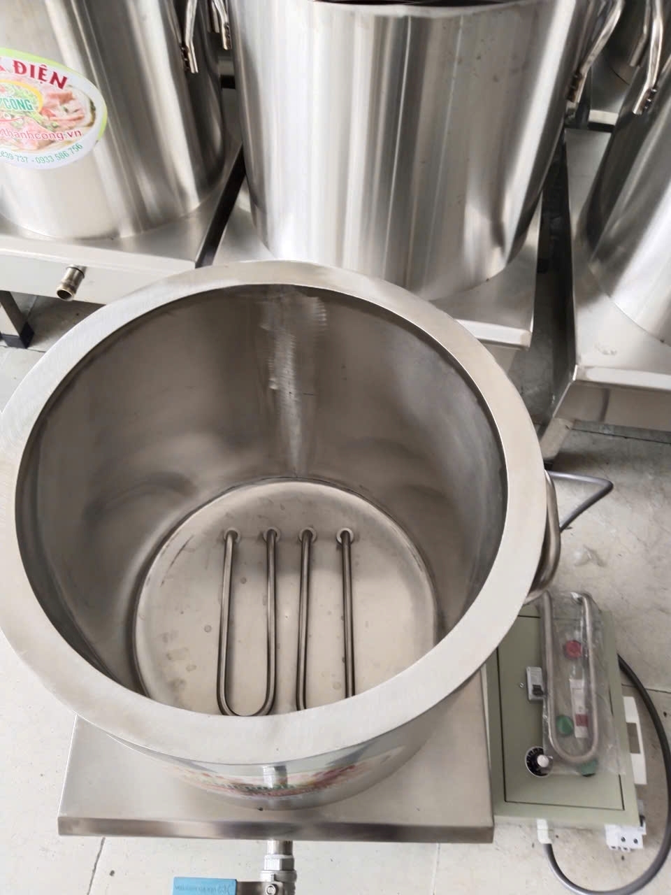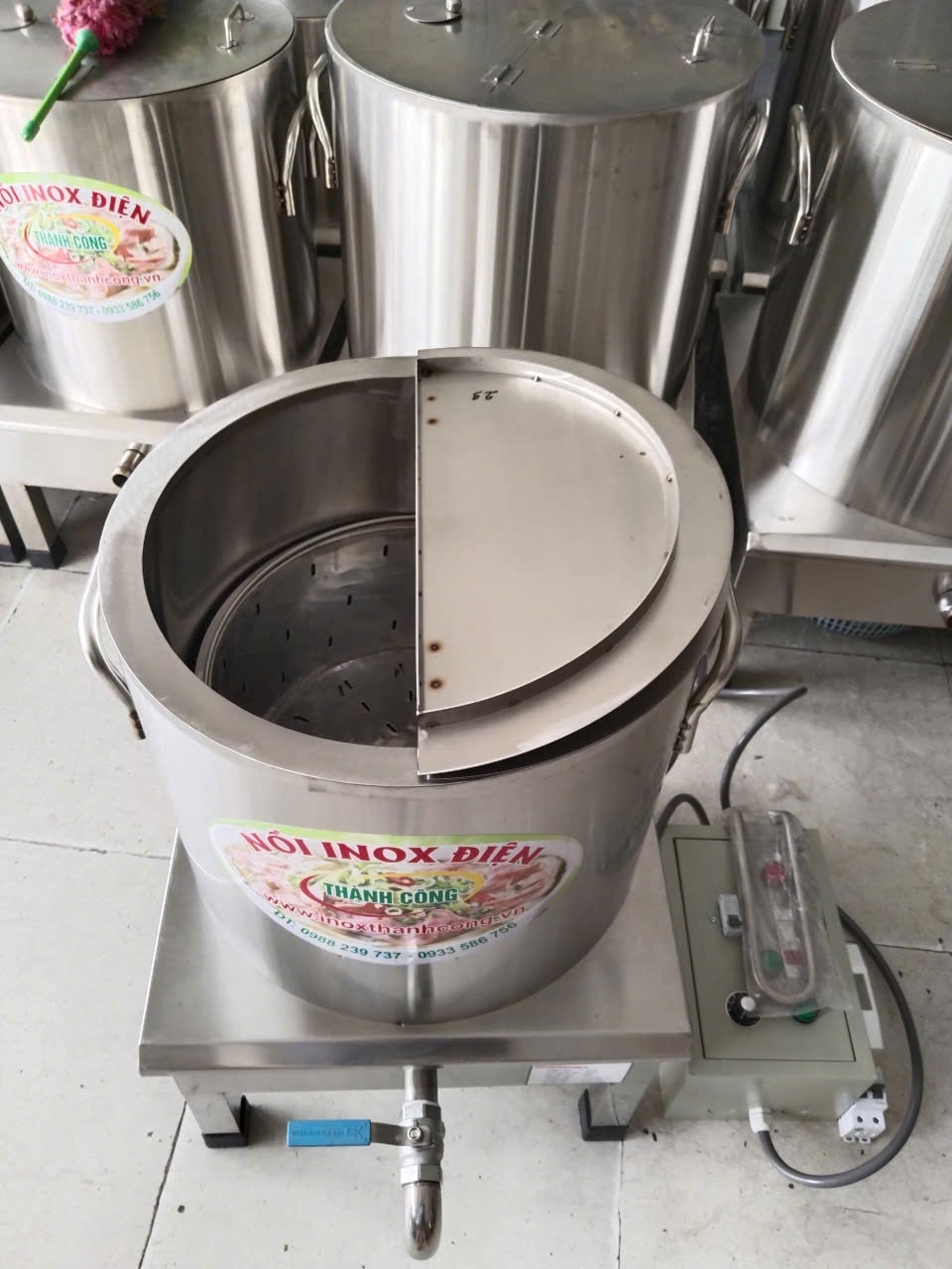 Nồi nấu bún phở bằng điện 50 lít Tủ điện rời hoạt động với công xuất 4kw, giúp đun sôi nhanh trong vòng 30-35 phút .